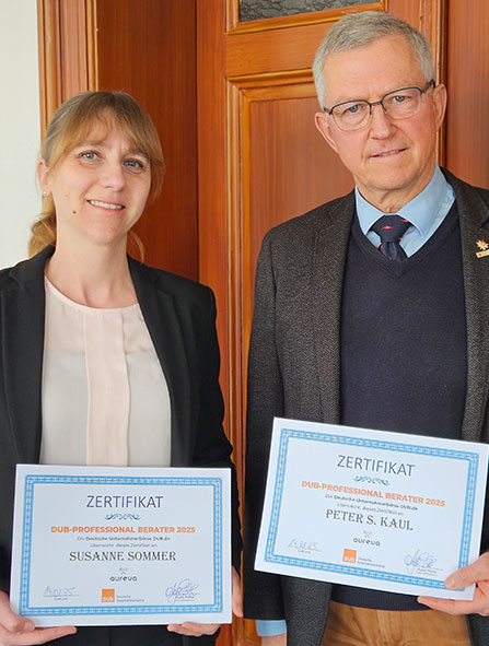 Als zertifizierter DUB-Professional Berater erfüllen wir die hohen Standards der DUB und bieten unseren Kunden fundierte Expertise, maßgeschneiderte Lösungen und einen vertrauensvollen Service. Mit der Zertifizierung als DUB-Professional Berater stärken wir unsere Position als verlässlicher Partner für Unternehmer, die vor wichtigen Entscheidungen stehen.